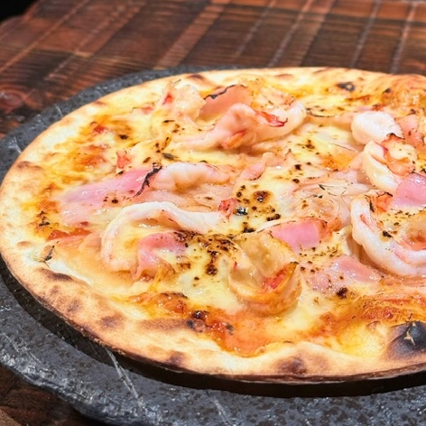海老と燻製ベーコンのピッツァ 1,265円 ぷりっぷりの海老がたっぷり入った贅沢ピッツァ!
