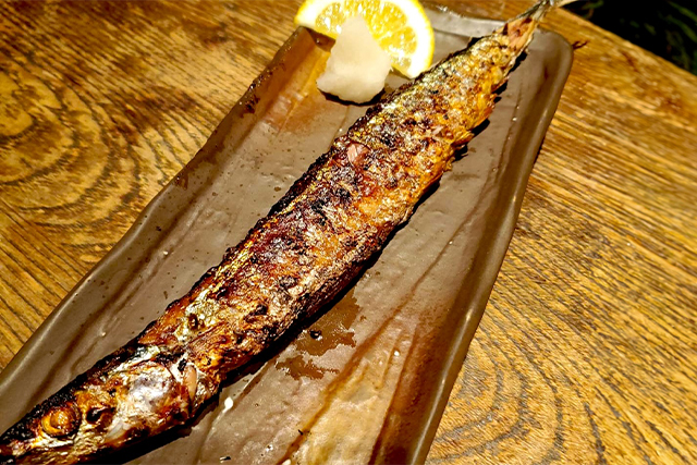 【秋刀魚の炭火焼き】580円 秋と炭にはやはりこれ。