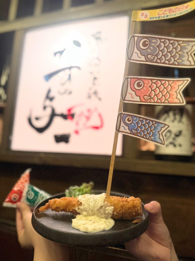 なすの与一では、当日来店してくれた20名ほどのお子さんへ、1人ずつ、みんな大好物のエビフライをプレゼントしました